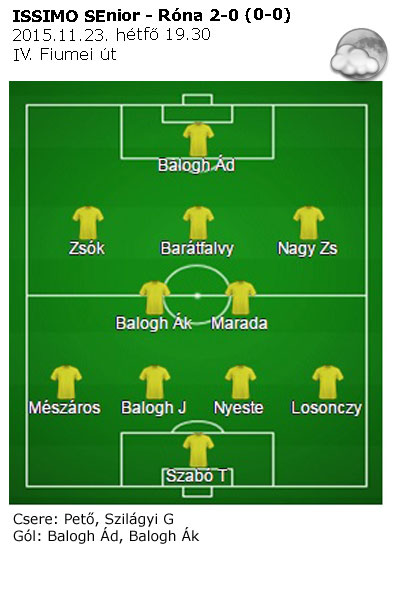 Az utolsó őszi fordulóban a Róna SC csapatát fogadta SEnior csapatunk hazai pályán. A csípős hideg időjárásban megrendezett mérkőzésen 2-0-s győzelmet szereztünk, a második félidőben kiharcolva a győzelmet.